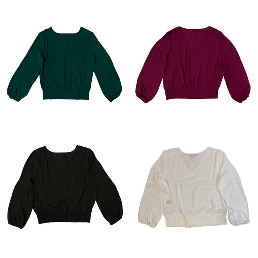 A v-neck blouse with a flattering smocked waist and balloon sleeve is a closet staple. Measurements lying down: Small: pit to pit: 19", length: 22"...