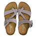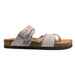 Get your spring and summer sandal wardrobe ready with the timeless, stylish, and comfortable Mountain Sole Women's Leather Footbed Sandal. This ladies sandal by Mountain Sole is an easy slip-on sandal featuring a crisscross leather strap that fits around the big toe for a comfortable fit and fun toe loop design. An additional braided strap adds more stability and a touch of fashion to this amazingly comfortable footbed sandal. A single adjustable buckle on one strap allows for a customized fit while the molded, suedette-lined, cork-wrapped footbed ensures every step is cushioned with comfort. The durable EVA outsole is shock-absorbing and non-slip, making it ideal for all-day wear. The contoured footbed with heel cup provides exceptional support, so you can be on your feet all day without the discomfort of being on your feet all day. The soft leather straps adjust to the curves of your foot, adding both style and comfort to your warm-weather wardrobe. With a 1-inch heel height, these medium-width sandals are perfect for any casual spring or summer outing. Whether you're strolling through the park or enjoying a beach day, these sandals offer the perfect blend of fashion, function and comfort you want to wear with all your outfits this year. You will not find sandals more suited to the comfort of your feet anywhere.