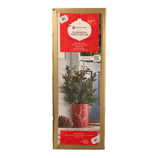 Condition: NEWOur Member's Mark Pre-lit Evergreen Arrangement is a wonderful addition to your porch, office, or home. The Pre-Lit Evergreen Arrang...