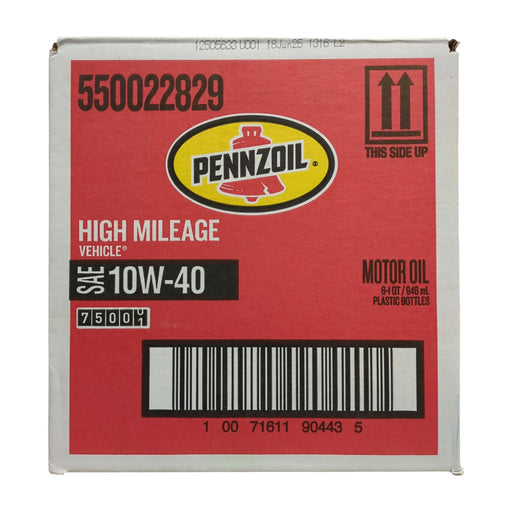 Pennzoil High Mileage SAE 10W-40 Motor Oil, 6-pack/1 quart bottles