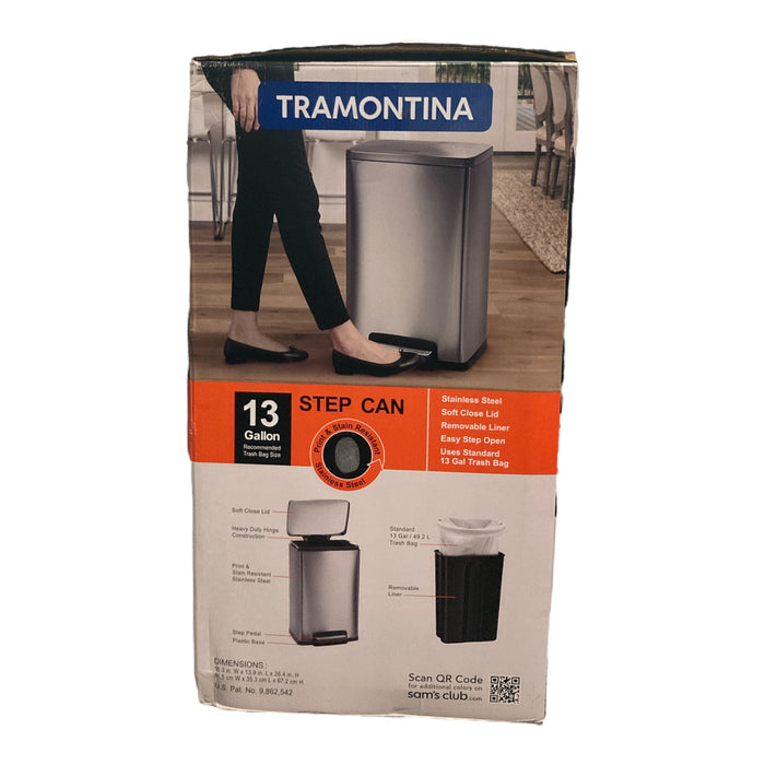 Tramontina 13 Gal Soft Closing Step On Trash Can, Stainless Steel